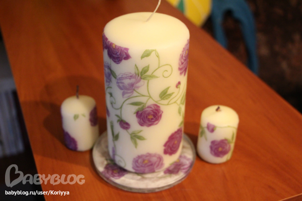 И сделала вот такой подсвечник под мои ранее сотворенные свечки..Обажаю эту салфетку!Подходит для урока?
