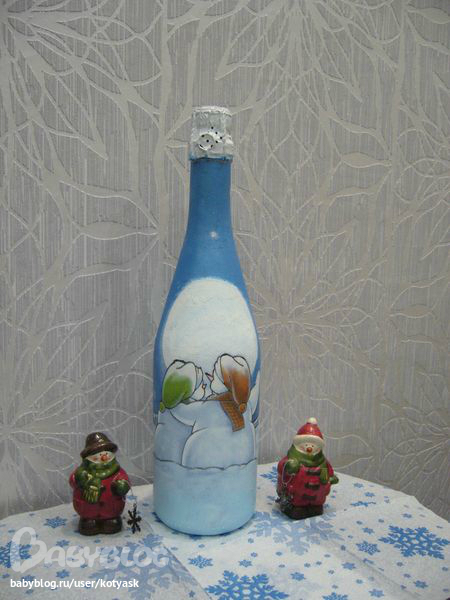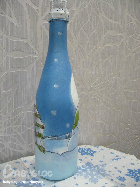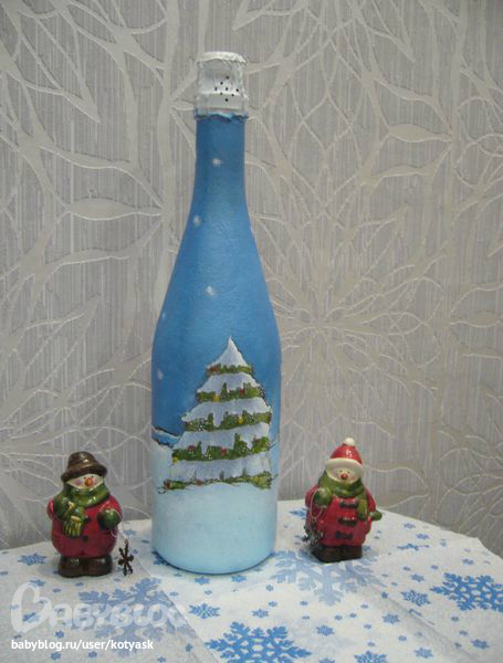 Знала, что нужно чем-нибудь горлышко украсить, но мишуру не хотела вешать. Хотела, чтобы работу сначала оценили. Вдруг что-то не так.