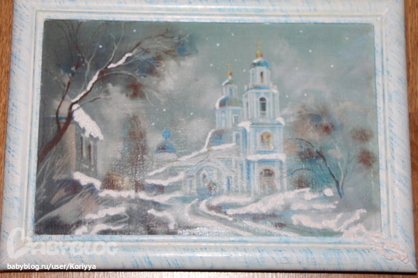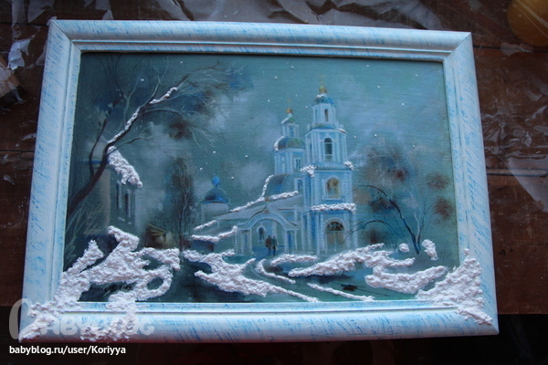 Посмотрела,здорово!А как думаешь, лучше тогда совсем без рамки деревянной или ее тоже выкрасить серо-голубой и с нее тогда сосульки пустить и чтобы снег не нее тоже заходил?