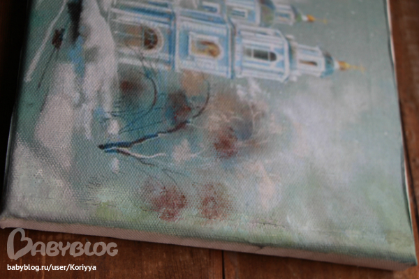 Посоветуйте! (обсуждаем черновые работы)После нанесения заготовки на холст требовалась дорисовка,сделала по мере сил - НО краешек холста все равно четко просматривается!Что делать?((((