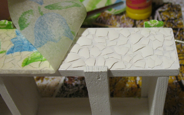 - приклеила на ПВА скорлупу в нужных местах (2 боковинки, верх и перемычки), тщательно раздвигая осколочки зубочисткой - приятная процедура ))
