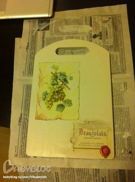 Посоветуйте! (обсуждаем черновые работы)Итак, выбрала мотивы, приклеила, сверху лак, дальше почпокала фон краской немного желтоватой, получилось: