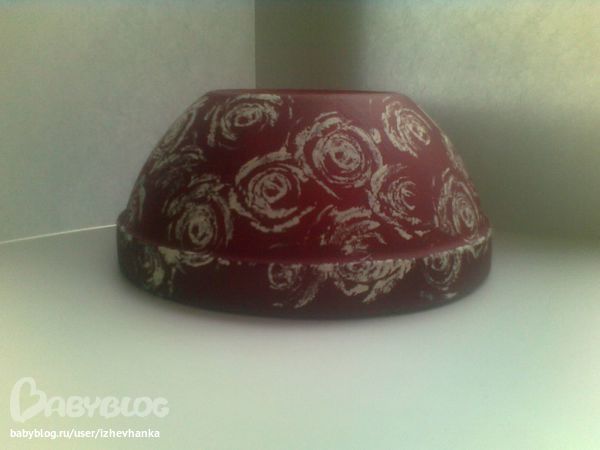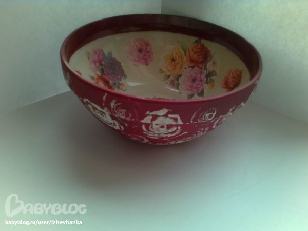 на внешнюю сторону салатника прочпокала розы что бы была связка темного наружнего фона со светлым внутренним