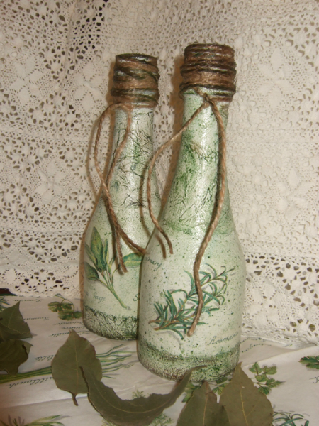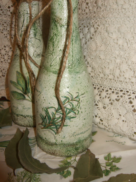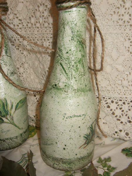 Архив работ к урокамМоя первая бутылочка, та в стиле прованс (на которую надо было сделать только набрызги), давно уехала к подруге))) С набрызгами, кстати. А я все до нее не доеду до подруги и не сфоткаю ее бутылочку как следует пока не выпили))))