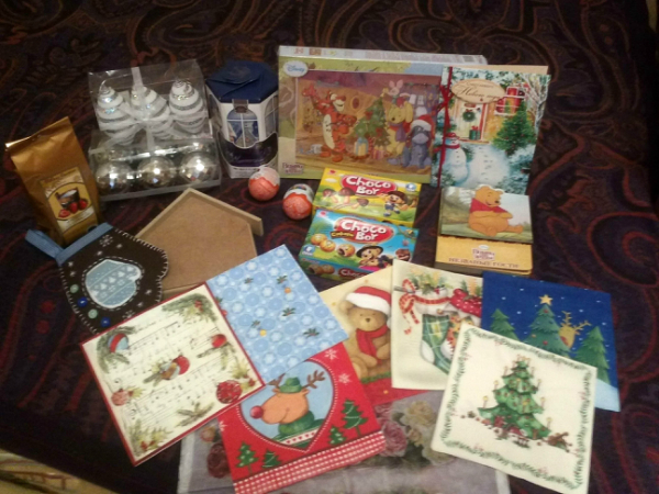Мы стали обладателями целой кучи совершенно замечательных подарков! Деткам каждому свой замечательный подарочек. Старшему пазлы, младшему книжечка и конечно много сладкого! Елочные игрушки, заготовочка, салфетки, рисовая карта, ароматный чай. Сногшибательная, ручная декоративная варежка к НГ!! Очень, очень понравилась! А еще совершенно покорившая меня открыточка с рукописным текстом и очень добрыми пожеланиями! Вот сколько всего! Спасибо, Оленька, большое! Очень радостно было получить от тебя посылочку, огромной теплотой и душевностью повеяло от нее. Еще раз огромнейшее спасибо! Ты лучшая феечка на свете!