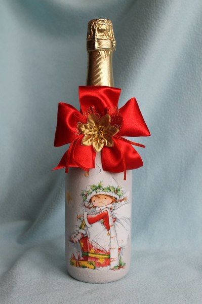 А ещё украсила парочку бутылок шампанского!Сделала все по-простому!