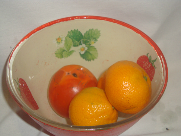 8. Покрыла всю поверхность салатника оранжевой краской.