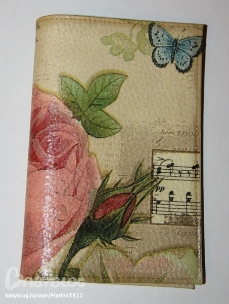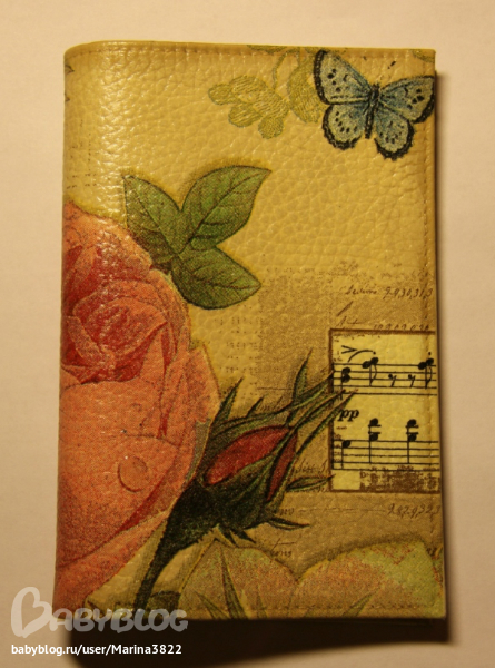 Материалы стандартные: кожаная обложка, салфетка, клей для декупажа, стекловидный лак, акриловые краски, 3д гель. Фото со вспышкой и без.