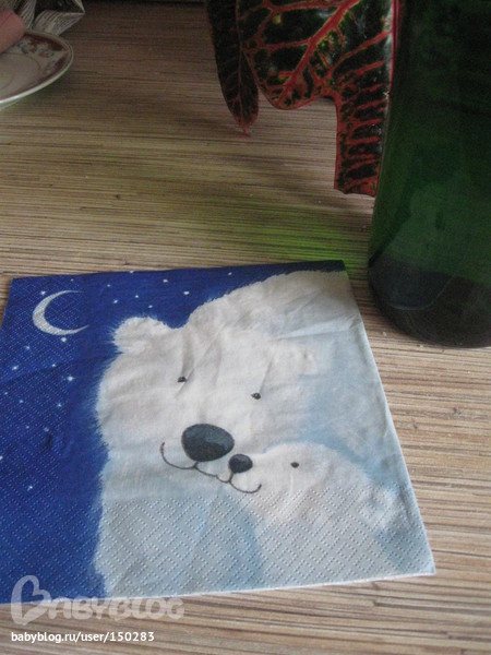 Иеще один вопрос хочется сделать новогоднее шампанское, что то подобное как по вашему мастер классу, есть красивая салфетка, но я не знаю как ее применить, как выстроить композицию, там мишка обрезан и начинается другой, стоит ли его делать