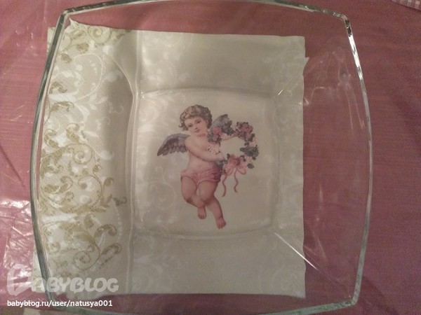 Ангелочка тоже можно. Его приклеить по центру, а вокруг что-то придумать... какие-то еще мотивы... или узоры трафаретом... Смотря что у тебя есть.