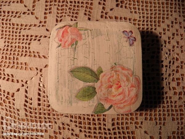 3. Наклеила мотив из салфетки. Сделала тени и покрыла лаком.