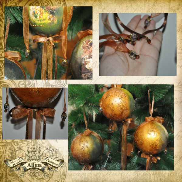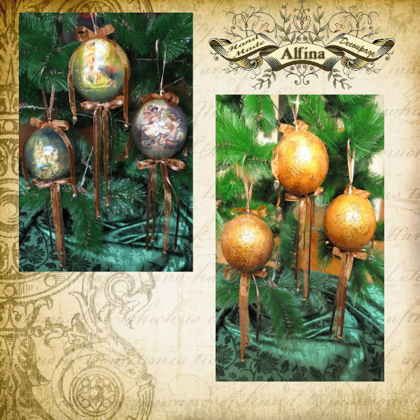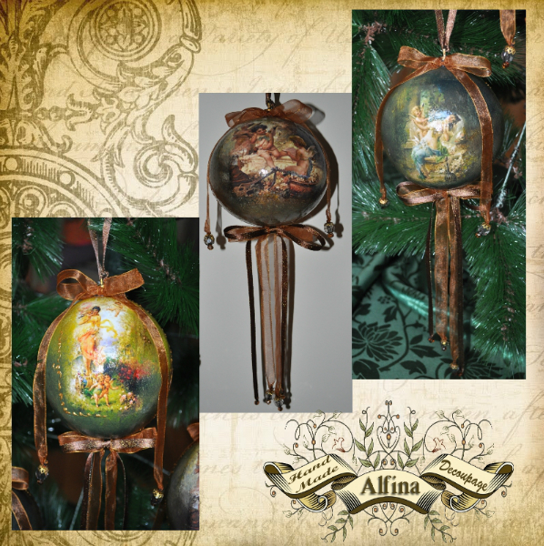 Материалы: Игрушки пластмассовые, акриловые краски и лак, 3D-контуры, распечатки, битум, шеллак, декоративные элеметы.