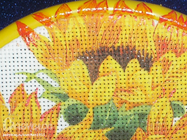 Кистью жесткой промазала ПВА по канве (не жалея клея)