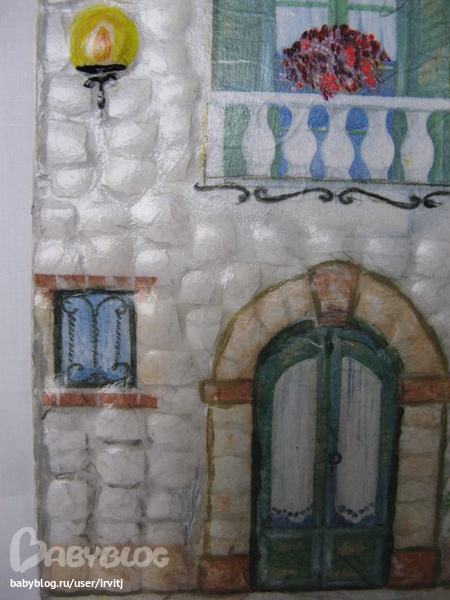Начала делать другую работу – ключницу с рисовой бумагой , но потом решила что надо сделать все-таки с салфеткой ,нашла в магазине подходящую салфетку и сделала панно для кухни .