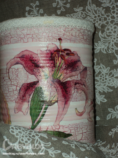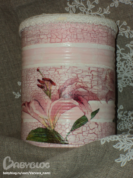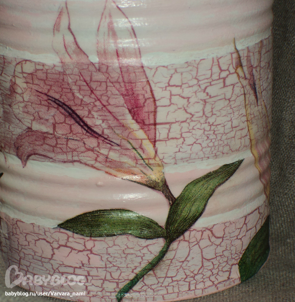 Архив работ к урокамДоброго времени суток! Моя работа с одношаговым кракелюром была интересной, но задержала я ее из за глупости и своих четных попыток с тенями и ободочками((( надеюсь работа удачная...хотя свои косяки знаю наверняка…Наталья, я так и не смогла «поженить» цвета, чуть было не запорола все и просто решила нарисовать белые полосочки, так как крышечка и кружево у меня белые…надеюсь гармонично вышло…жду Вашего решения.