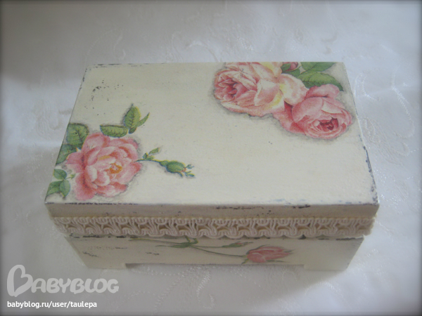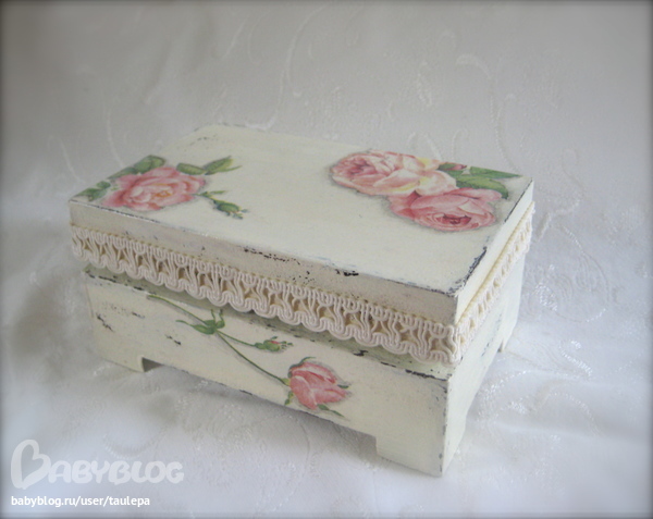 Шкатулочка просто сама нежность и очарование!!! Как и её хозяйка!!! С днем рождения!!!!!! Хорошо, в коментах прочла, что ты сегодня именинница, а то и не знала бы)))))))