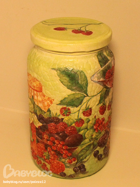 Спасибо! Хотела шкатулку сделать, но магазин рукоделия находится далековато. Проболела все праздники. Пришлось делать из того что было в наличии. Не поняла вопрос( что с другой стороны баночки).