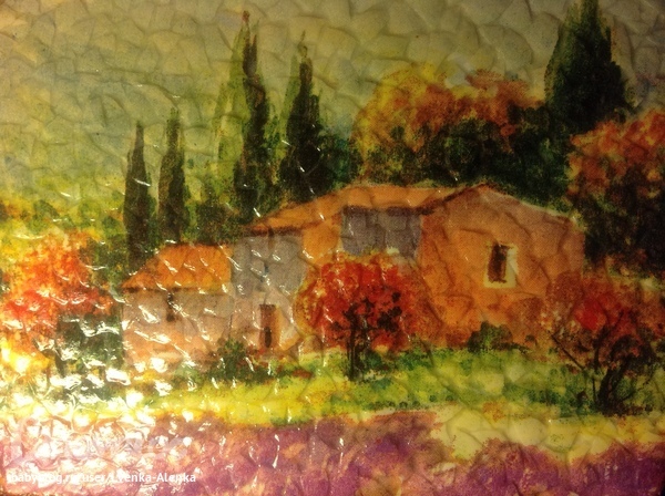 Покрыла обратную сторону морилкой, почпокала края и по контуру.