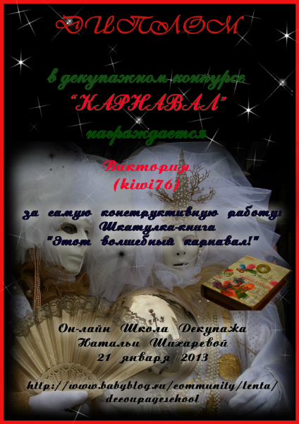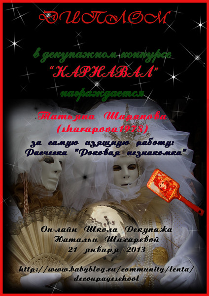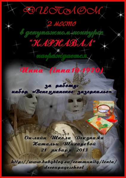 Я, наверное, самая последняя дипломы увидела!!! КРАСОТА НЕОБЫКНОВЕННАЯ!!! Наташе и Альбине - ВИВАТ!!! Спасибо, девочки!!! За все - за все!!!