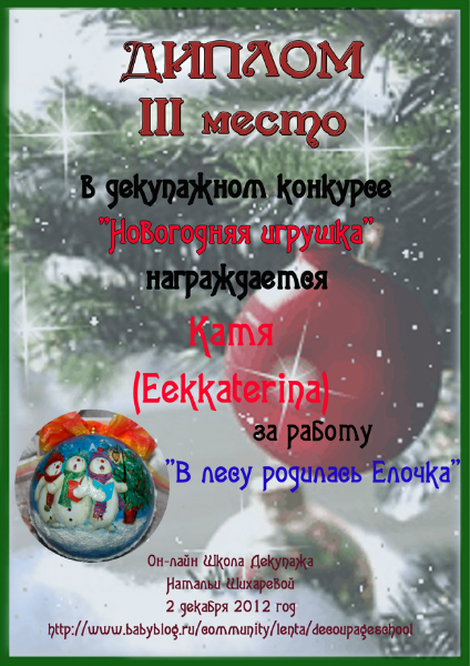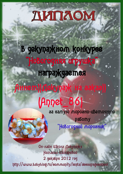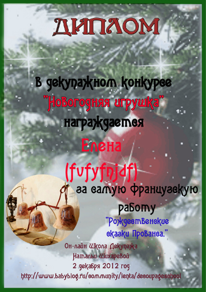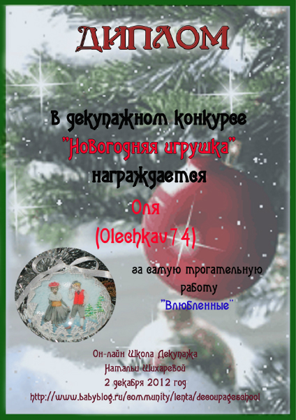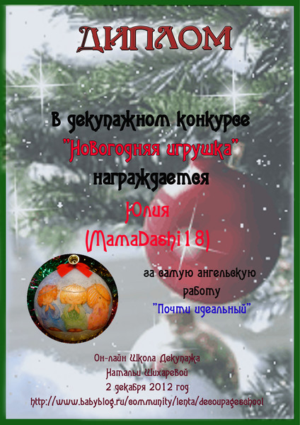 Альбина в ОН-ЛАЙН ШКОЛА ДЕКУПАЖА НАТАЛЬИ ШИХАРЕВОЙ 13 лет Дипломы по итогам декупажного конкурса "Новогодняя игрушка" Конкурсные работы Посмотрите еще 20 записей на эту тему Отменить Ответить Катя Ой, спасибо, Альбиночка ,большое!!!!)))) 25.01.2013 Ответить Альбина Девочки, вам от Натальи и от меня на радость! 25.01.2013 Ответить Катя 26.01.2013 Ответить Оля Спасибо, Альбиночка!!!! Дипломы очень красивые!!!!! 25.01.2013 Ответить Альбина Девочки, вам от Натальи и от меня на радость! 25.01.2013 Ответить Оля 26.01.2013 Ответить Юлия Спасибо))) 25.01.2013 Ответить Альбина 25.01.2013 Ответить Дипломы по итогам конкурса "Ах, карнавал, карнавал!" Дипломы по итогам декупажного конкурса "Уютная кухня" Чаты Беременных Выберите чат: Январята-2026 Февралята-2026 Мартята-2026 Апрелята-2026 Майчата-2026 Июнята-2026 Июлята-2026 Августята-2026