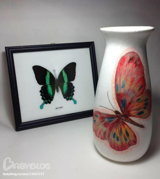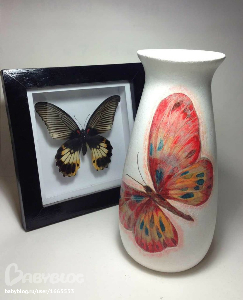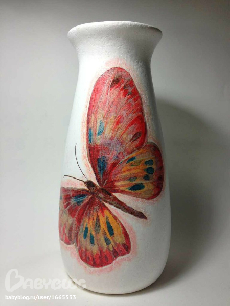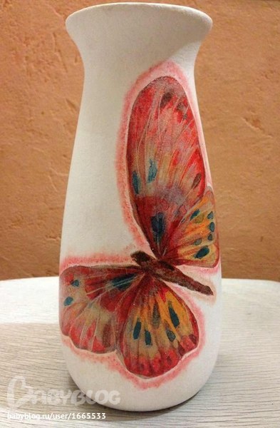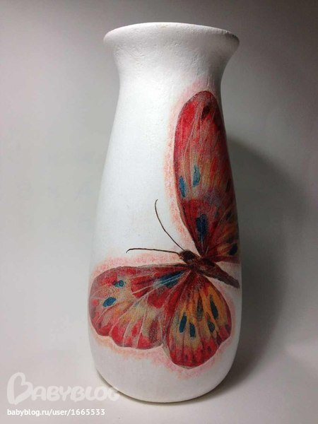 Архив работ к урокамВаза с бабочкой. Была у меня старая-старая вазочка, вся потресканная, хотела выбросить...
