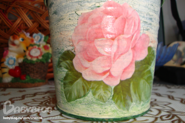 4. Наклеила вырезанный мотив из декупажной карты, нарисовала тени.