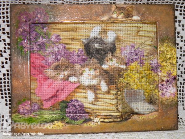 работа напомнила мне мое детство, вернее лето в детстве ) Моя бабушка вышивала и у ее была вышивка похожих котят. Я помню как рассматривал их когда бабушка спать укладывала нас - внуков. А нас было много ))) всего 15 внуков , но тем летом нас наверное 7 было в гостях)