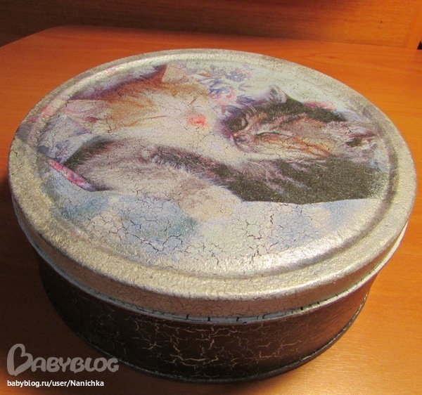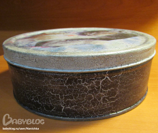 Покрыла акриловым грунтом (грунт оказался не очень плотным, а рисунок на коробке был довольно ярким, поэтому пришлось покрыть аж на три слоя).