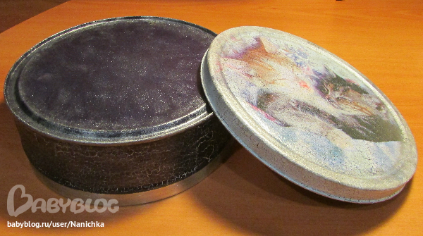 Крышку покрасила фиолетово-синей краской, а коробку светло-голубой.