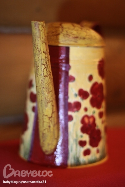 Ход работы: Загрунтовала заготовку, вырезала и приклеила мотив, нарисовала на некоторых деталях фон под кракле, дорисовала фон к мотиву, прокрасила рисунок на мотиве.сделала кракле, когда изделее просохло покрыла лаком.