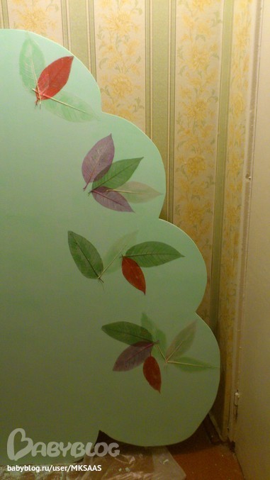 Девочки,всем здраствуйте!Я конечно же уже давно не ученик школы,но по-возможности стараюсь сюда заглядывать.Читать-читаю,а писать удается не всегда.Нужен ваш совет-делаем с мужем шкафчики детям под игрухи-книги.Там будет вот такое дерево-стенка(часть с листьями за пределами основного массива.Часть как на первых двух фотках).Я приклеила,имеющиеся у меня листочки(оформительские) Теперь вот в чем заключается вопрос:что лучше сделать дальше:
