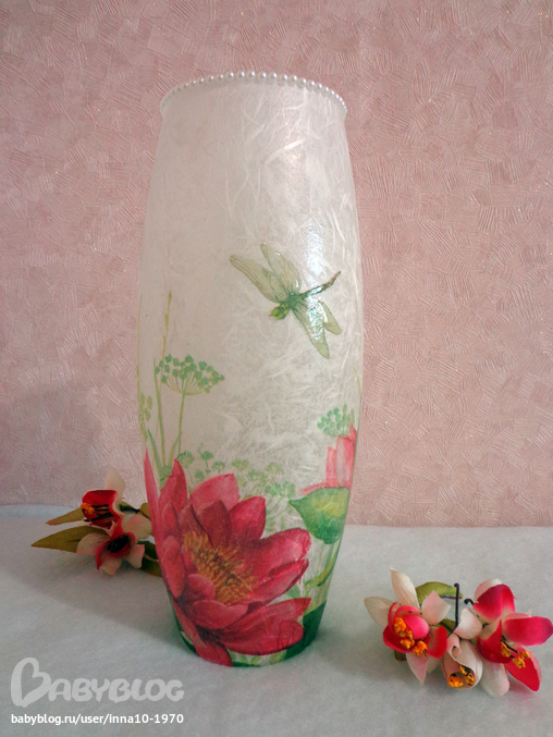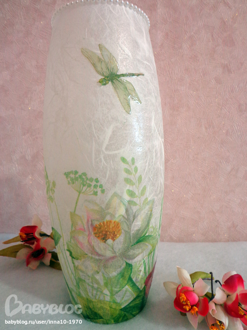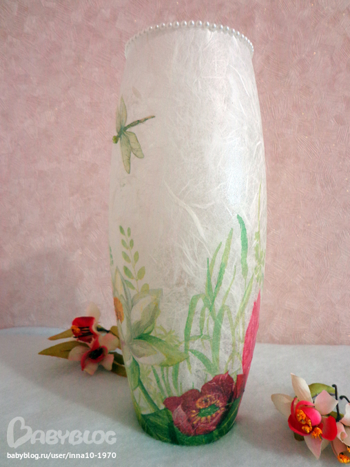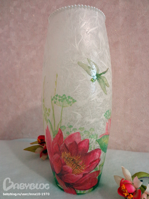 Архив работ к урокамСтеклянная ваза с рисовой бумагой+салфетка