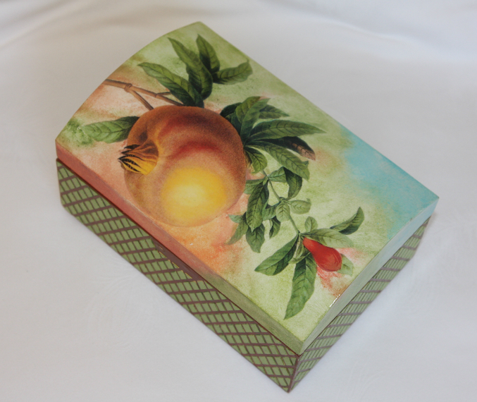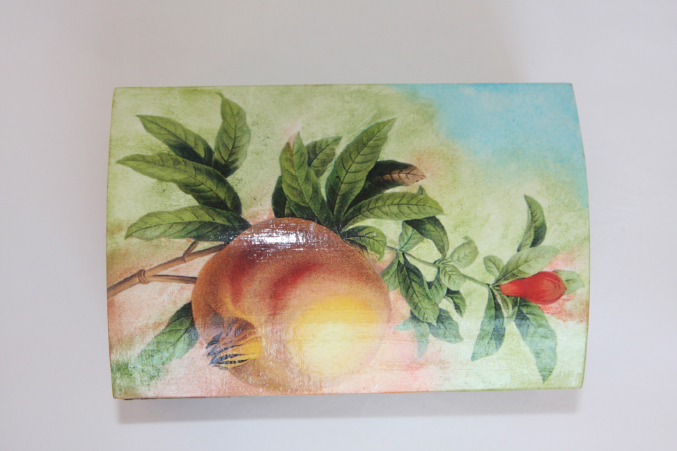 2. Истончила распечатку водным способом, накреила на клей мод-подж (распечатка полностью покрывает верхнюю плоскость, а на боковинки не заходит)