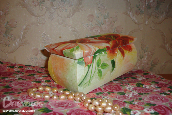 Шкатулка выполнена в технике художественного деупажа - темы, которая далась мне очень тяжело))) Но в итоге получилось вот что)))