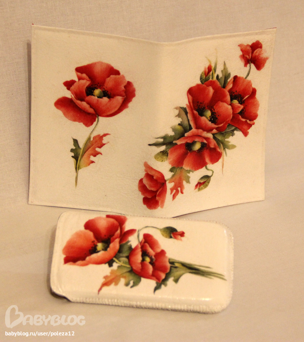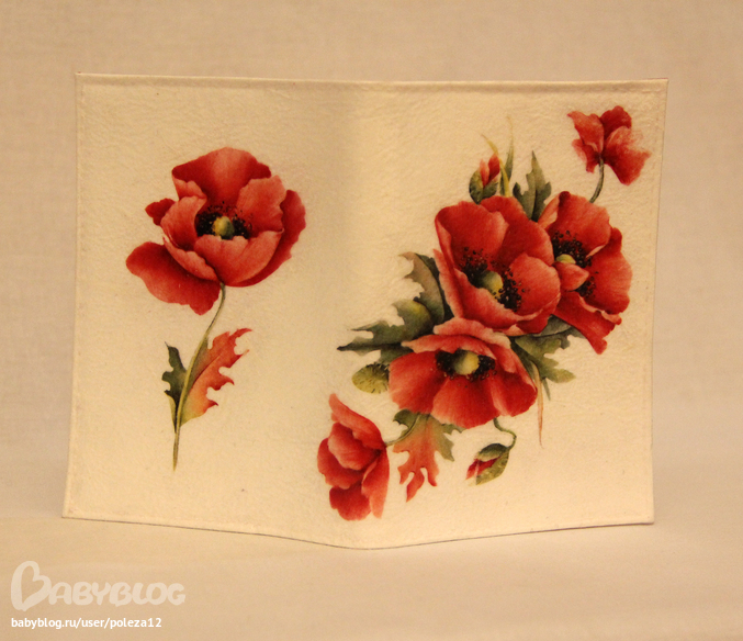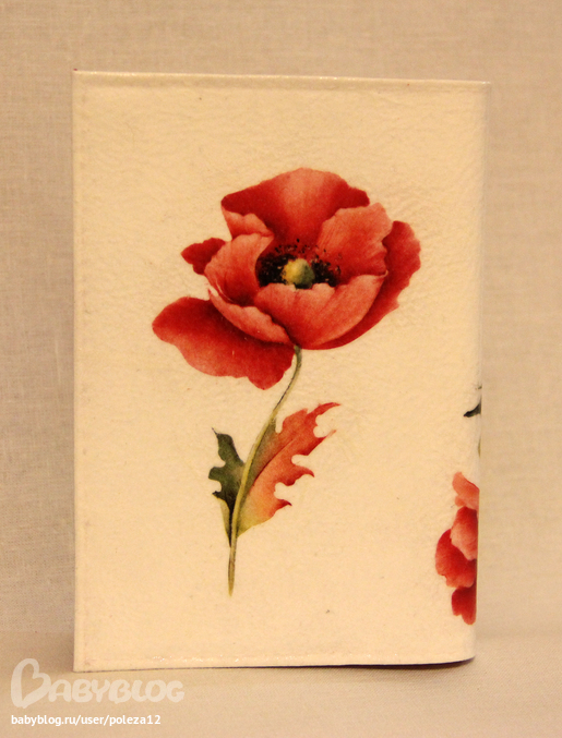 -на обложку для паспорта приклеила рисовую бумагу и вырезаные маки, на ежедневник салфетку