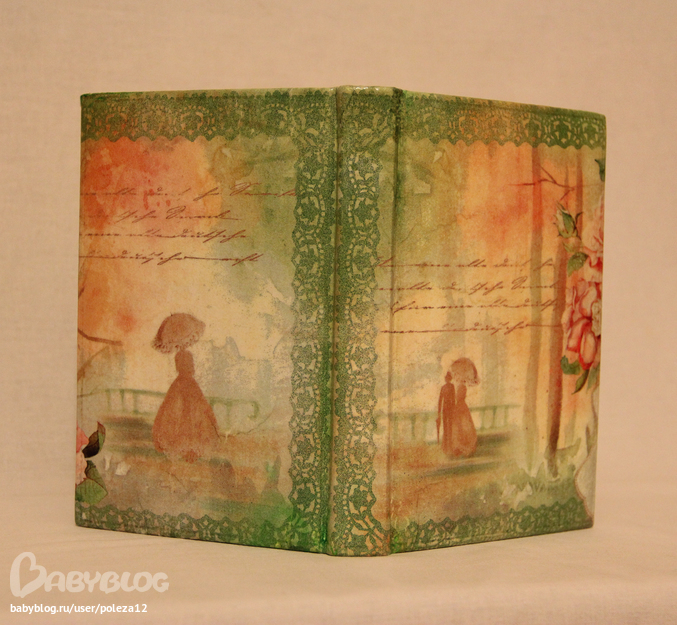 у меня на вазе также, только на вазе кусочками всю вазу оклеила и маки вырезаные приклеила. На обложке целиком бумага по размеру и вырезаные маки