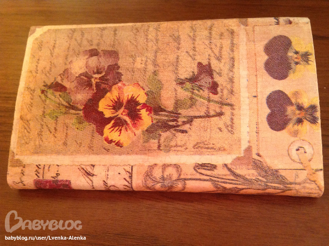 -приклеила салфетку методом файла на две стороны (сначала одну сторону, потом другую, состыковала)