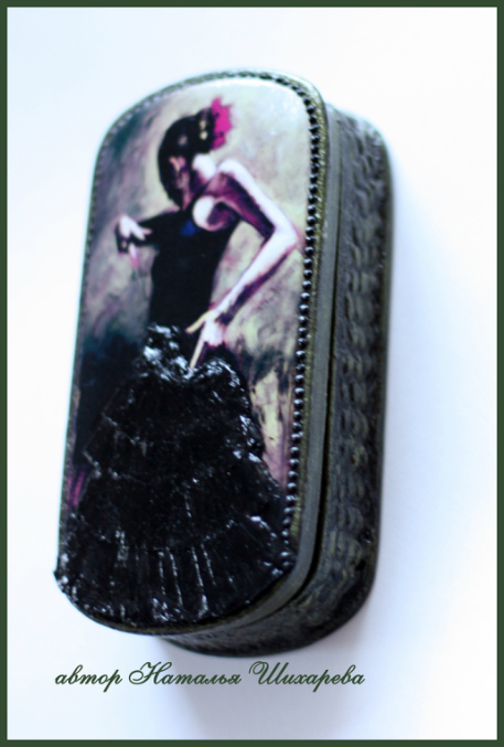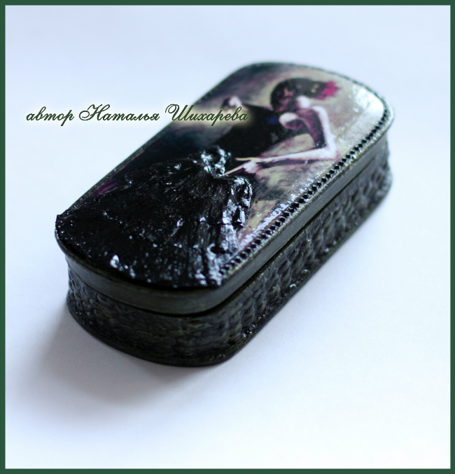 Шикарно, стильно!!! Не пойму, чем сделан объем на футляре? На яичный кракелюр не похоже, что это?