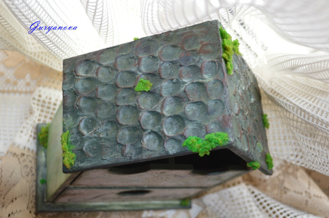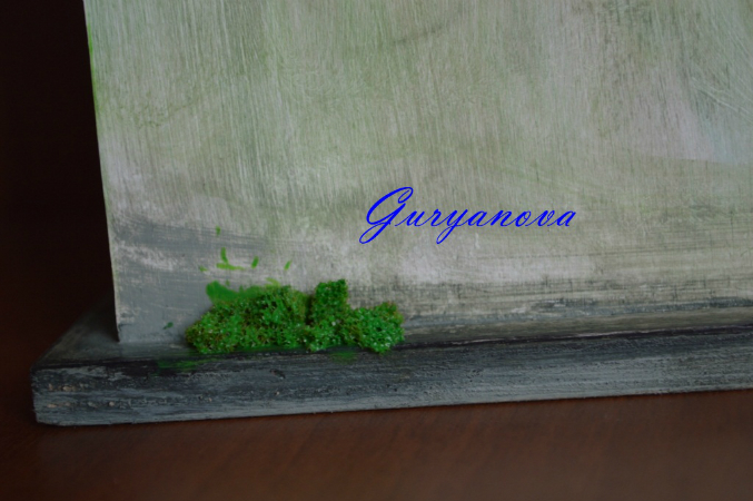 заготовка, распечатка, акриловые краски , шпаклевка, имитация мха(мелко нарезанная губка+пва+ акриловая краска)