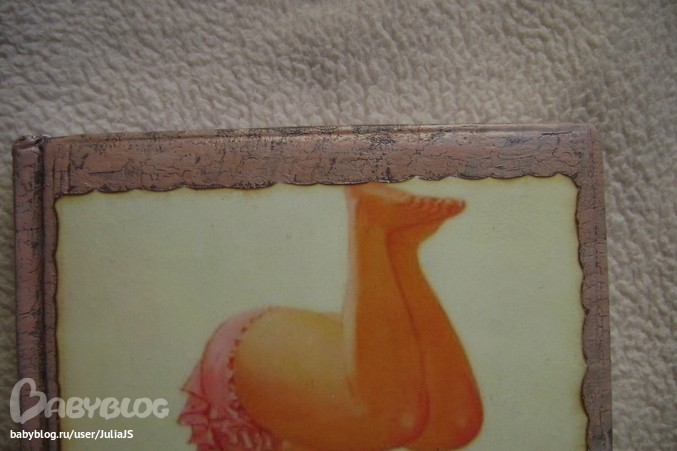 Да? Может мне тааак видно, потому что я этот прцесс наблюдала, как эти все слои за кисточкой полезли. Вичка, если присмотреться - над пяткой - там край такой немного .. облезлый. Я просто боюсь дальше лаком покрывать, если кракелюр так лезет за кисточкой.