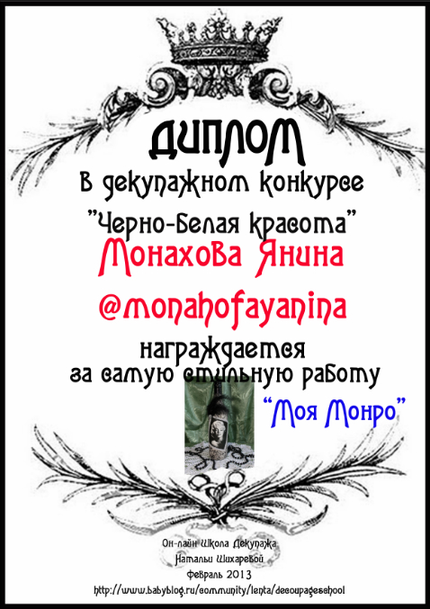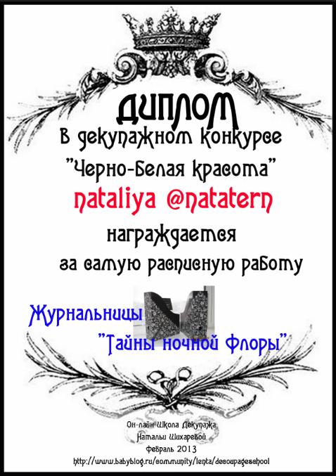 Спасибо Наташе и Альбине за дмпломы!!! Такие стильные получились,в духе конкурса!!!