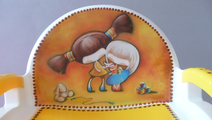 - на желтом стульчике нанесла точечки ватными палочками, покрыла 4 слоями лака
