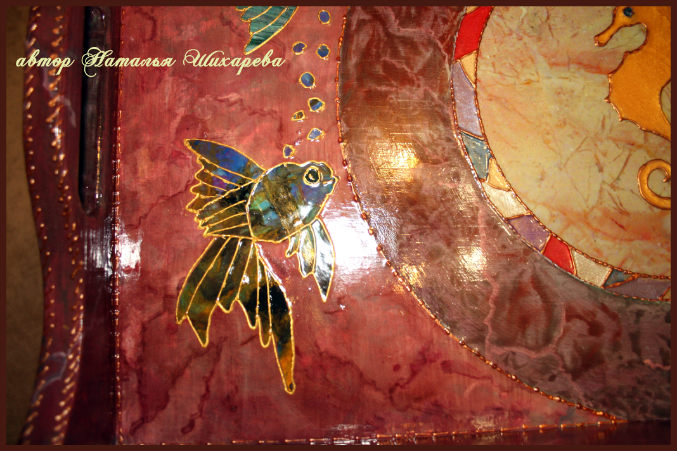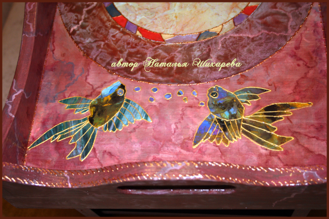 Я в шоке, какая красота, сколько всего! Очень красиво и необычно! Выглядит шикарно! Наташ, а сколько слоев лака и каких и в каком порядке на этом столике? У меня до сих пор стоит столик с урока по шебби стоит, на котором слоя 4 лака, так и не знаю пока, как закончить.. Как-то писала пост, но никто не отозвался..