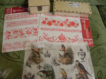 А это для меня!!!!! Тут столько всего!!!! Трафареты, заготовки, рисовые карты, салфетки!!! Все такое классное!!!!