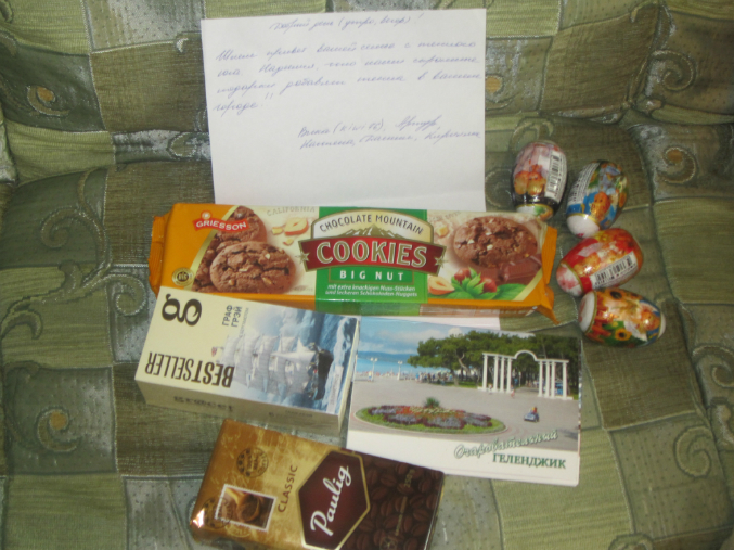 В нем было теплое письмецо с пожеланиями, вкусняцкий чай, ароматный молотый кофе, обалденно вкусное печенье (я не удержалась и с чаем попробовала))