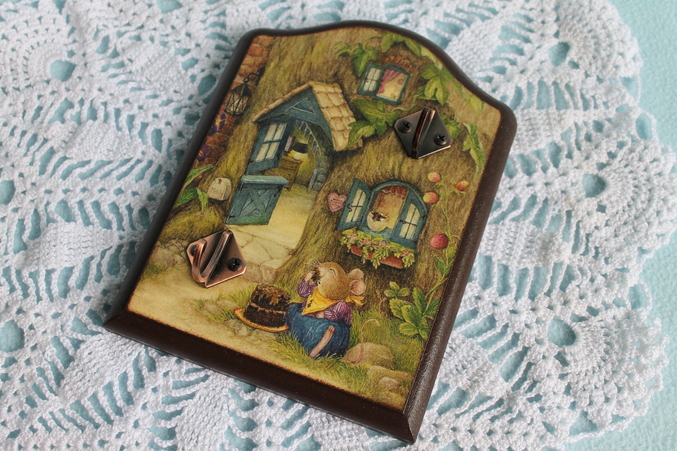 Ключницу морила тёмно-сиреневой краской и шкурила.На рамочке и краях мазки светло-сиреневой краски и шкурение.