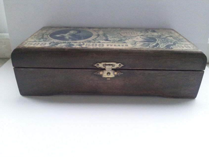 Материалы: морилка, расспечатка, краски, лак матовый и картон бархатный( обошла все магазины рядом с тканью, и нигде нет бархата.... за то кожа зам.очень понравилась)