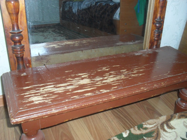 3.Столик был покрашен какой-то краской, облупился, стал щербатым ( в местах, где краска облупилась, образовались ямочки)Нужно ли выравнивать его поверхность? Чем? Шпатлёвка будет держаться?