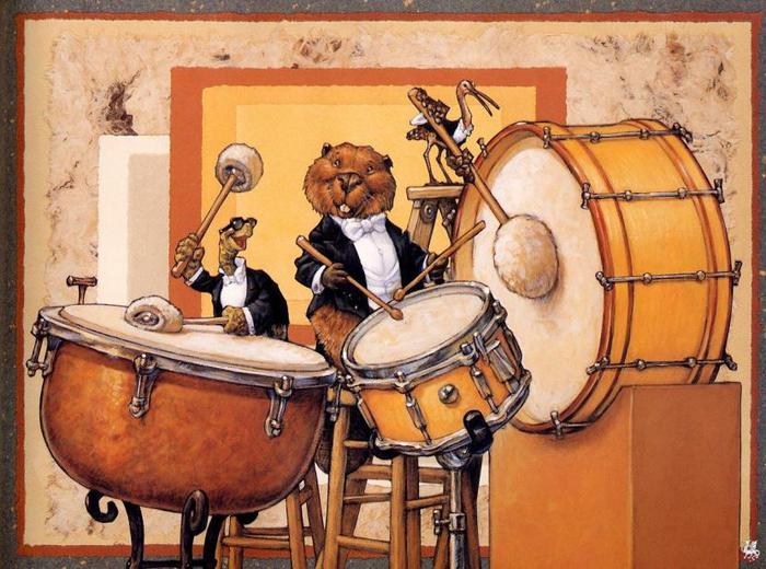 Девочки помогите, нужно сделать обложку для барабанщика, может есть у кого то какие то прикольные картинки с барабанами, может животные играют на барабанах, очень очень нужно