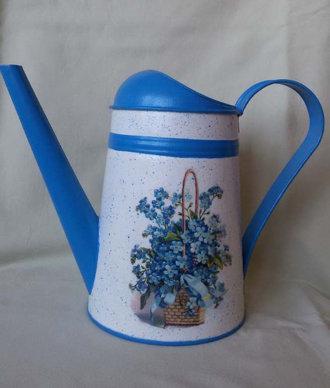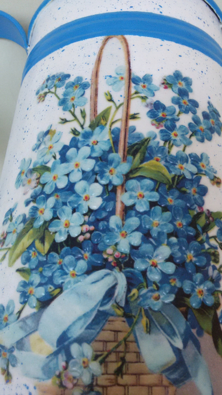 Я долго не могла придумать оформление этой леечки. Никак мне тут мотив никакой не виделся. В итоге выбор пал на незабудки. Вот только у меня осталось ощущение, что чего-то не хватает. Если что-то подскажите, буду рада советам. Хотя бы на будущее ))